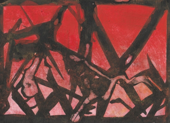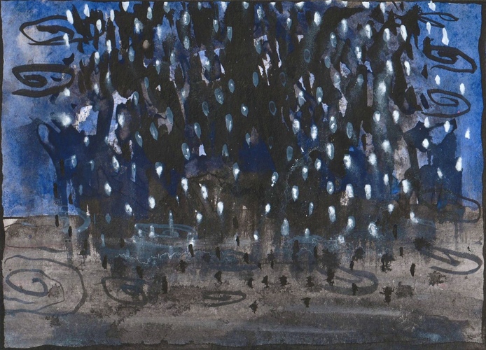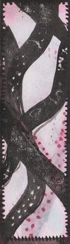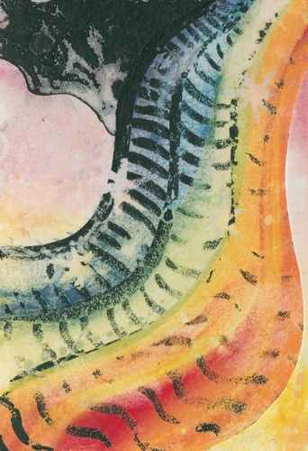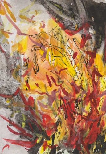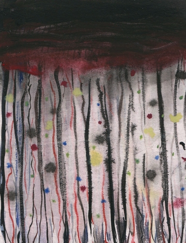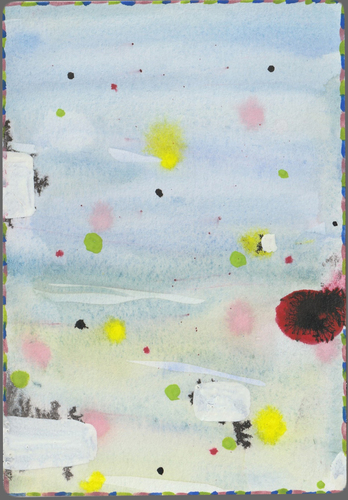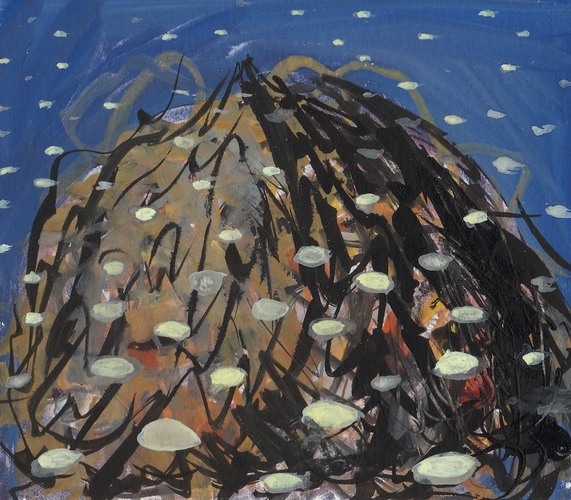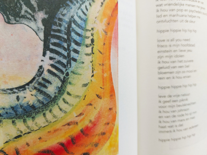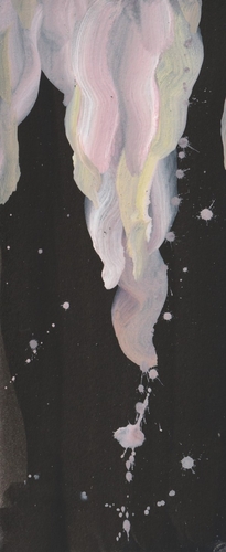 In her atelier, Emily Vincke can usually be seen wearing her multicoloured elephant skin: an overall thick with layers of paint. In this atelier - also covered with layers of paint - she creates her own universe. Just by painting, eliminating, scratching, and painting over, an image starts to appear on a chalk ground layer. Emily makes these ground layers herself, because they are crucial for the physical appearance of her works.