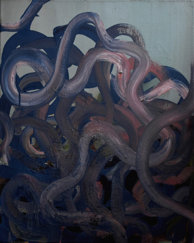 "The oil paint reacts quite unexpectedly with these ground layers, like the painting has a will of its own. When I start a new painting, I have a feeling of endless freedom, without any rules or conventions. The first layers are like a chaotic swirl of colours and textures. Mixing colours, experimenting with pigments, oil, solvents ... I want to get to know all the possibilities of paint, what kind of effects I can achieve. I eliminate and paint over. My work changes a lot during the process. Some of my paintings look quite minimalistic, but if you look more closely, you will see a lot of different colours and underlying layers shining through, like a vivid skin. Sometimes I feel like an archaeologist searching for hidden frescos; lost images to rediscover."